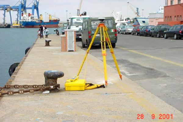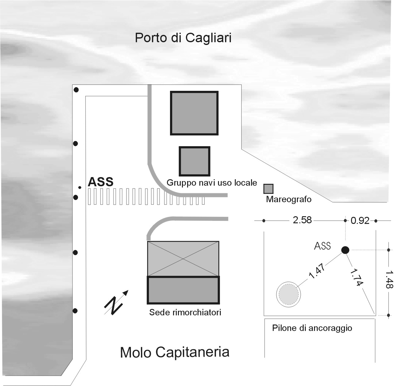| materializzazione | Centrino in acciaio inox del tipo "GPS D" infisso nel bordo della banchina a sud del molo della Capitaneria di Porto e precisamente in corrispondenza del passaggio pedonale posto fra gli edifici "Gruppo navi uso locale" e "Sede rimorchiatori". |