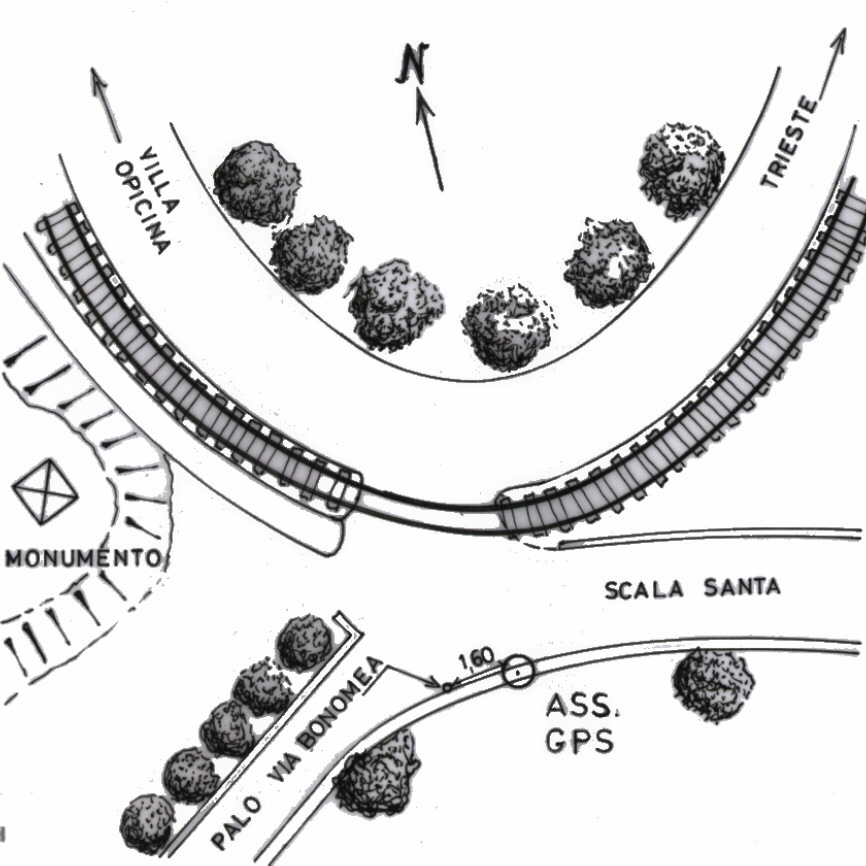 Centrino in acciaio inox del tipo "GPS D" infisso nel muro a retta di contenimento di Via Bonomea, all'incrocio con la S.S.58, in prossimità di Poggioreale.