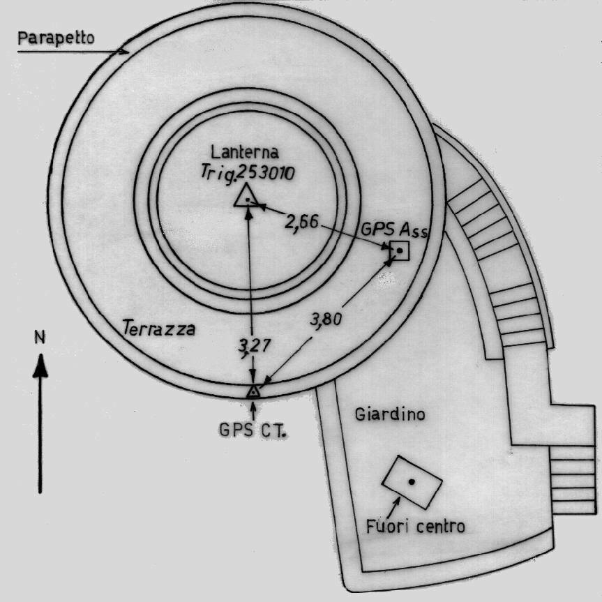 | materializzazione | Asse del tubo fissato alla sommità di un pilastrino in cemento posto sulla terrazza che circonda la lanterna, ad est della lanterna. |