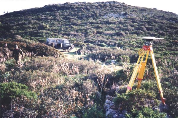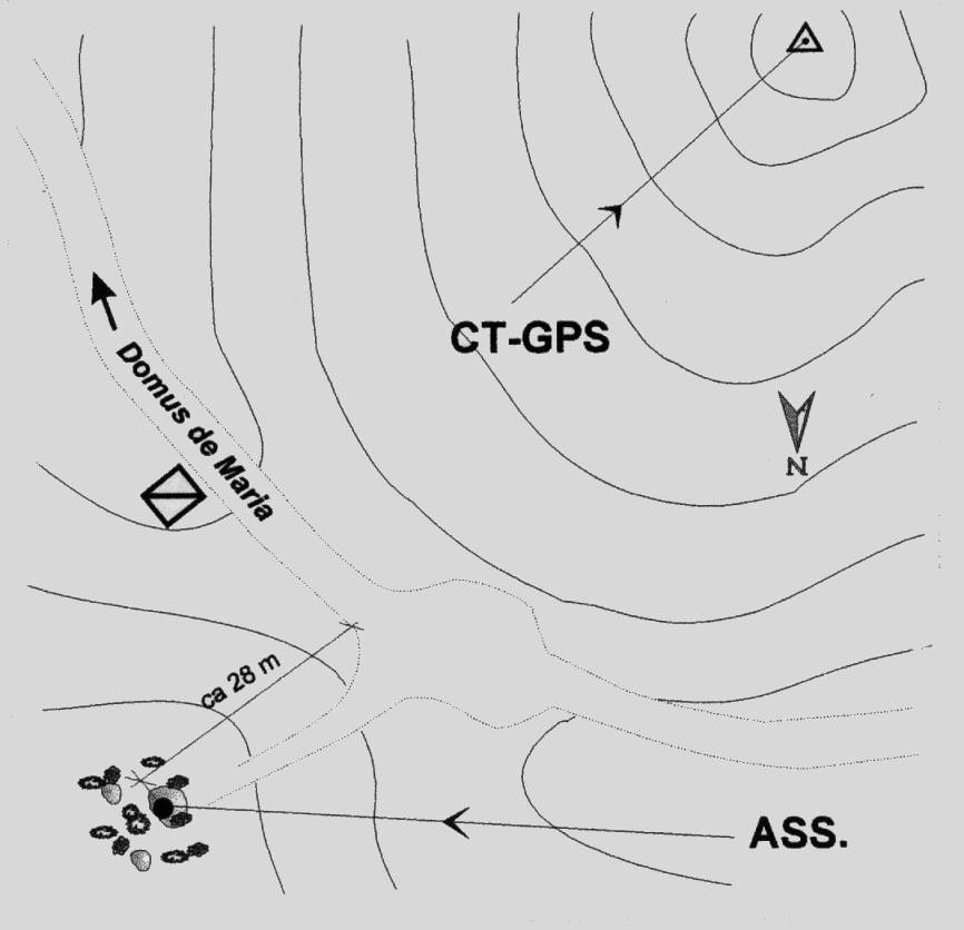 Centrino del tipo "GPS D" infisso in roccia affiorante a destra dello slargo della carrareccia.