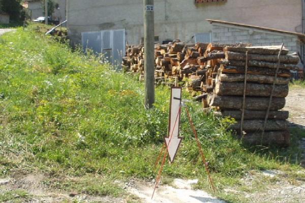 Centrino metallico infisso su di una grossa cunetta in cemento, sul bordo strada destro salendo, all'ingresso di Località Ca Abbadina.