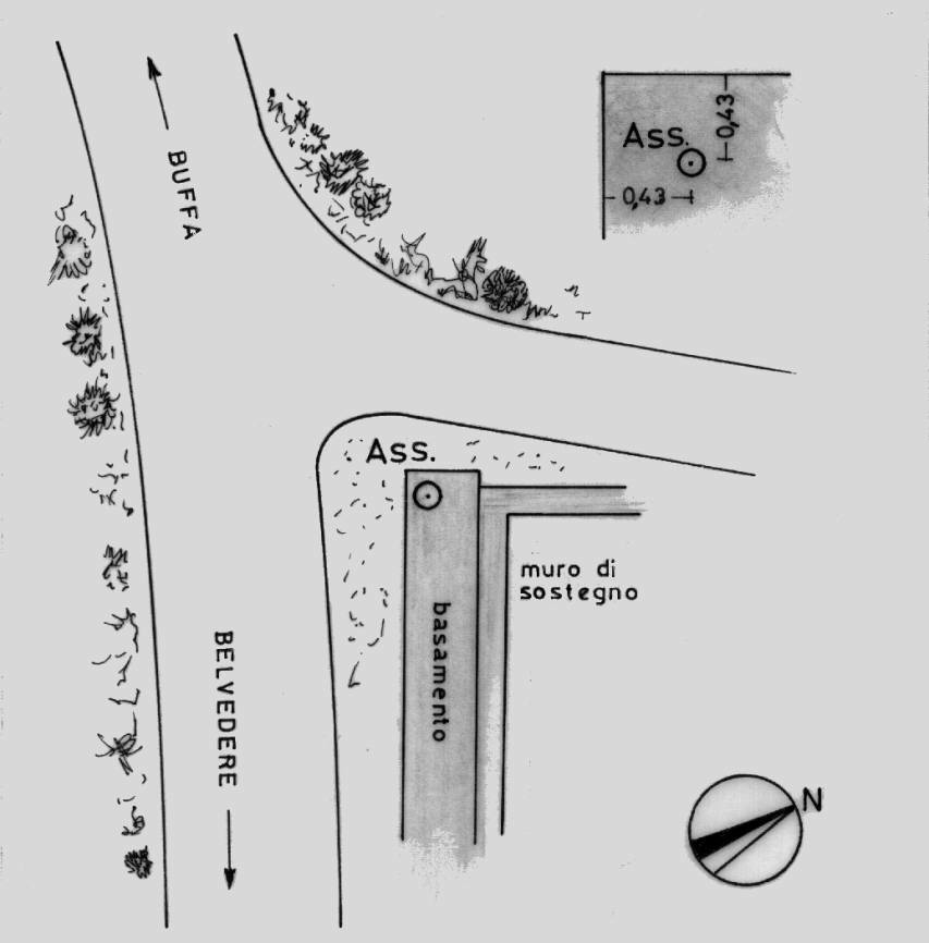 Centrino di tipo "GPS D" infisso sul basamento in calcestruzzo del muro di sostegno a lato di Via Buffa.