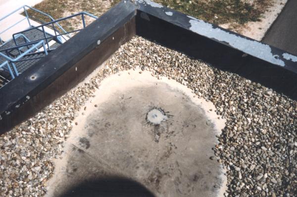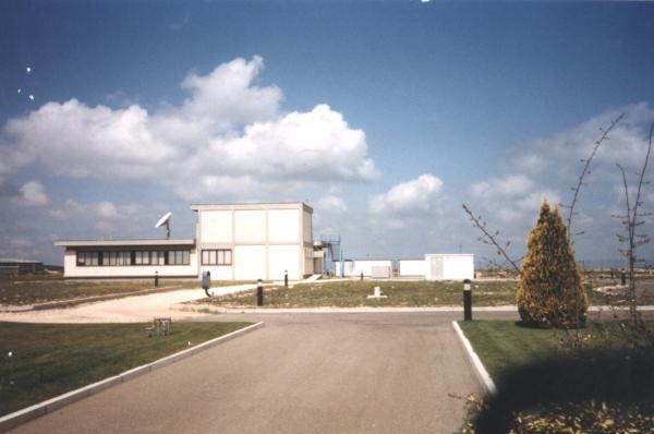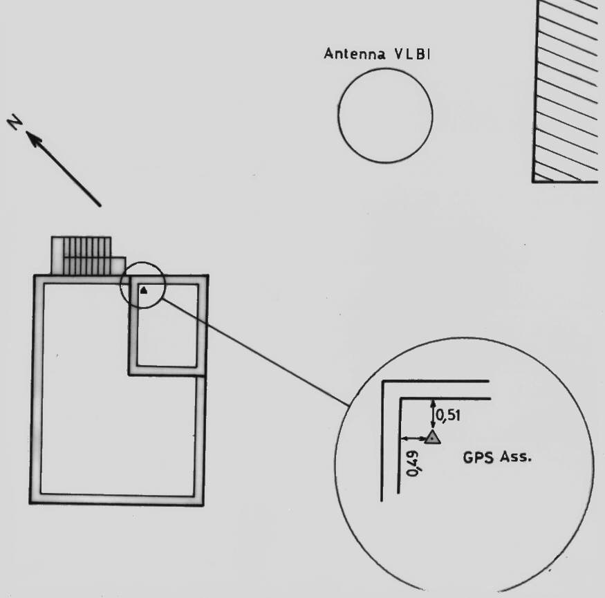 Centrino di tipo "GPS D" fissato sulla soletta di copertura della parte più alta dell'edificio più a ovest del complesso del "Centro di Geodesia Spaziale", presso lo spigolo nord.