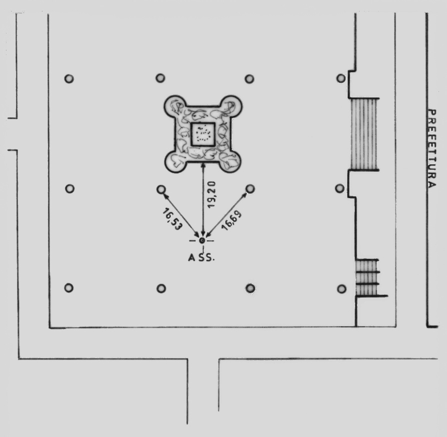 | materializzazione | Centrino del tipo "GPS D" infisso nella pavimentazione in clinker della Piazza d'Italia a sud del monumento a Vittorio Emanuele II°. |