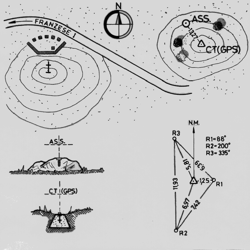 | materializzazione | Centrino di tipo "GPS D" fissato su roccia affiorante posta a nord – ovest del CT – GPS. |