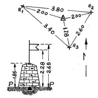 | Materializzazione | Segnale sulla vetta del monte omonimo. Centrino su roccia affiorante con sovrastante pilastrino a secco. Riferimenti:come da pianta. |