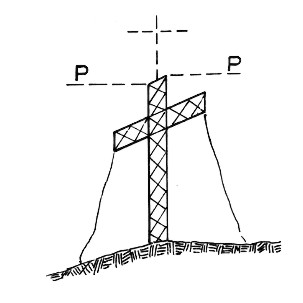 | Materializzazione | Croce a traliccio in ferro fra le due punte del monte. Asse geometrico della croce. |
