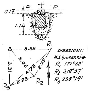 | Materializzazione | Segnale sulla sponda destra del Torrente Iudrio. Centrini tronco-conici di superficie e di fondo; il primo cementato sopra un masso irregolarmente tronco-piramidale. Riferimenti:Tre centrini cementati su rocce affioranti. |