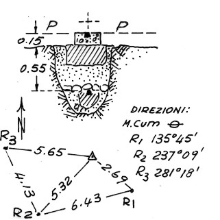 | Materializzazione | Segnale presso la conflurnza dei torrenti Iudrio e Glosciag. Centrini tronco conici di superficie e di fondo. Riferimenti: Tre centrini, R1 cementato sopra un masso affiorante, R2 e R3 sopra un unico roccione affiorante nel letto del Torrente Glosciag. |