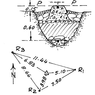 Segnale sul monte, a circa 7 metri a Sud – Est di un caratteristico albero. Centrini troncoconici di superficie e di fondo; quest'ultimo cementato in roccia. Riferimenti: tre centrini cementati su roccie affioranti.