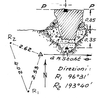 | Materializzazione | Segnale sulla pendice della catena di Montemaggiore. Centrini di fondo e di superficie; quest'ultimo cementato su grossa pietra. Riferimenti: due centrini cementati su massi fissi. |