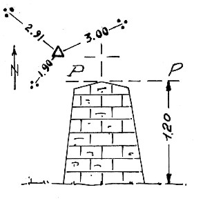 Segnale sulla cima del monte. Triangolo scolpito su roccia affiorante e sovrastante pilastrino a secco. Riferimenti: come da pianta.