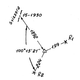 | Materializzazione | Segnale nelle vicinanze del termine n. 15,circa 2 metri a Sud – Ovest del sentiero che attraversa il passo. Centrino di zinco cementato su roccia. Riferimenti come da pianta. |