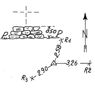 Segnale sulla punta più a Nord delle Cime di Fiorina, sulla linea di confine. Pilastrino in muratura con sottostante centrino tipo svizzero. Riferimenti come da pianta.