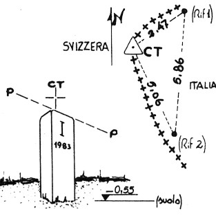 Sulla cima erbosa del monte omonimo. Pilatrino in granito rosa recante la scritta 1983. Asse pilastrino. Sono presenti 2 riferimenti consistenti in centrini metallici dislocati come da pianta.