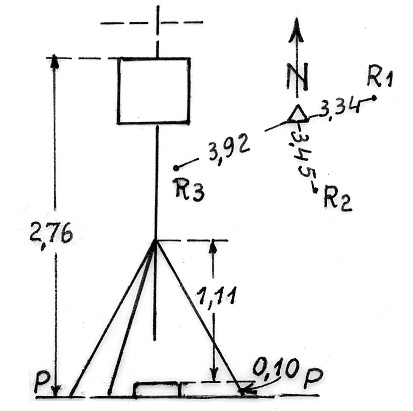 | Materializzazione | Segnale sulla cima del monte. Pietra con triangolo inciso e sovrastante mira in ferro. Riferimenti:come da pianta. |