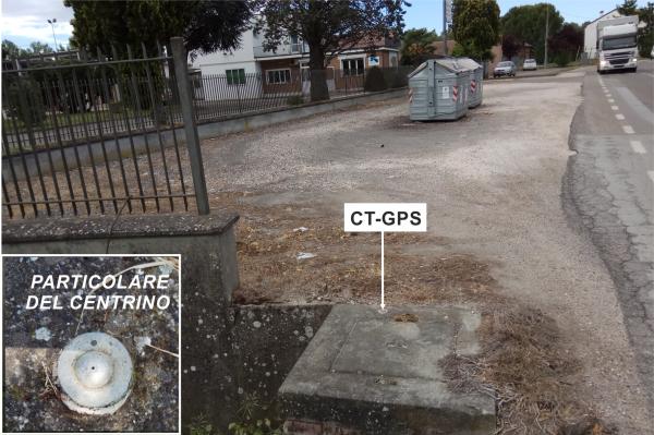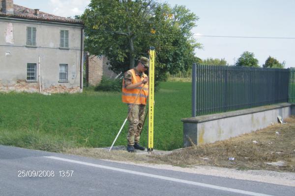 | Materializzazione | Centrino metallico infisso nello spigolo del cordolo in cemento che delimita il grosso tombino posto al lato della S.P. 8, all'altezza del km 12,800, in prossimità del centro abitato di Bagnocavallo. |