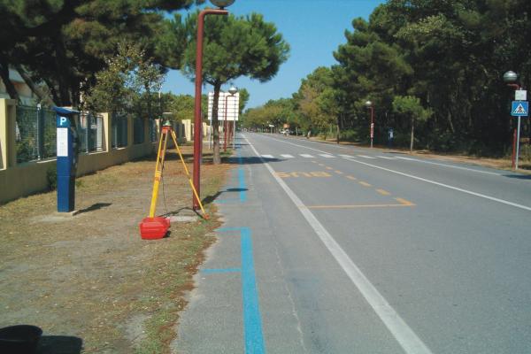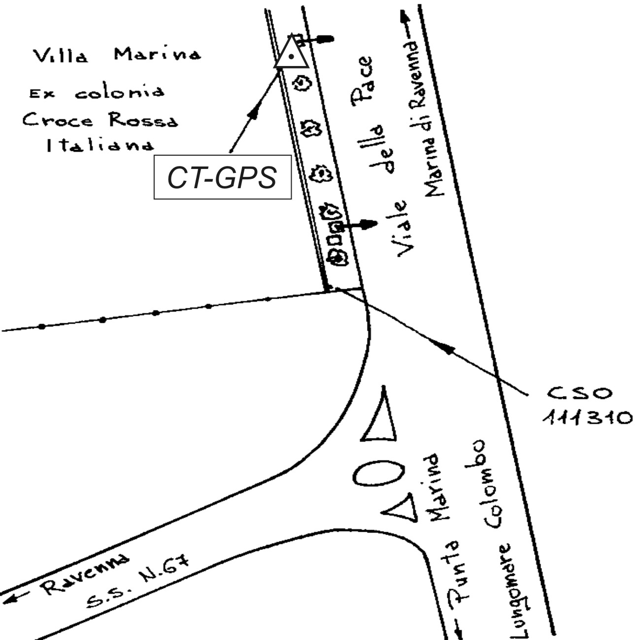 Centrino metallico infisso nello spigolo del cordolo in cemento del tombino posto lungo il Viale della Pace nelle vicinanze del'ingresso dell'Hotel Villa Marina.