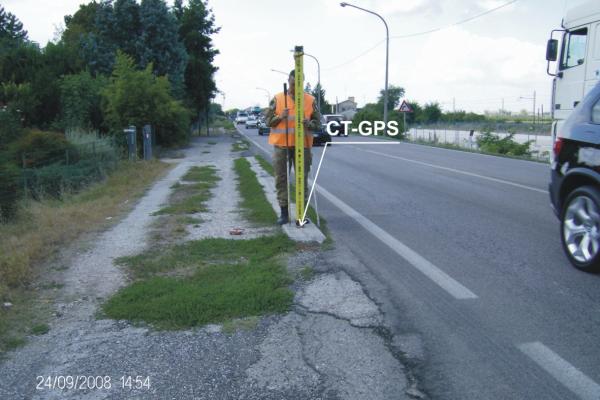 Centrino metallico infisso all'estremità del cordolo di cemento che delimita la carreggiata stradale della S.S. 16 all'altezza del km 142,800 nei pressi dell'incrocio con Via Piangipane.