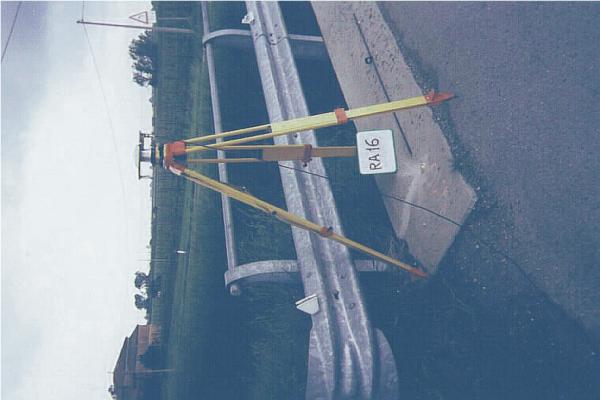 Centrino metallico infisso nella platea di cemento che sostiene il guardrail del ponte posto lungo la S.P. 8 all'altezza del km 19,500.