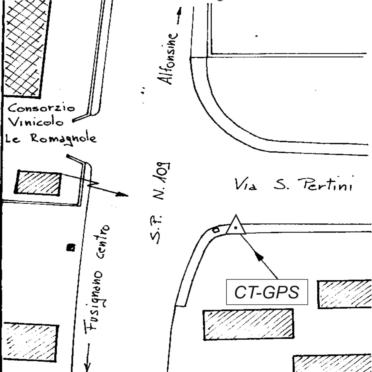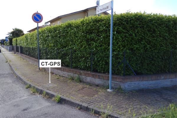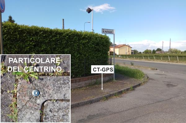 | Materializzazione | Chiodo mettalico del tipo "Survey Point" infisso nello spigolo del cordolo in cemento del tombino posto sul marciapiede di Via Sandro Pertini, all'interno del centro abitato di Fusignano. |