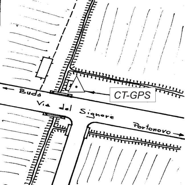 | Materializzazione | Centrino metallico infisso sulla sommità del tombino in cemento posto al bordo della Via del Signore nelle vicinanze del centro abitato di Buda. |