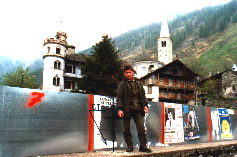 Sul muro perimetrale del parcheggio lato T. Egna. Chiodo in acciaio inox cementatosul muro. GPS