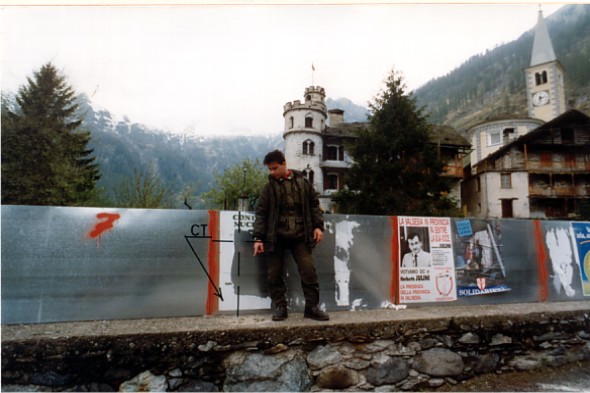 Nel piazzale adibito a parcheggio auto all'ingresso del paese.