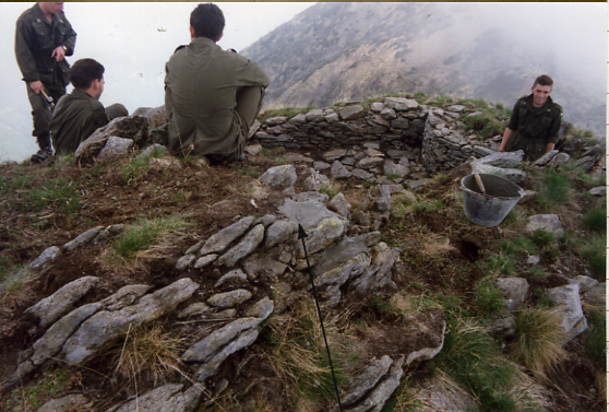 Centrino di profondità cementato su roccia a circa 50 m. ad Est del punto più alto del monte, q. 1836 sulla carta, ed adiacente ad una ex postazione militare. Riferimenti: R1(spigolo interno est della postazione), R2 (croce incisa su ripiano in pietra). GPS