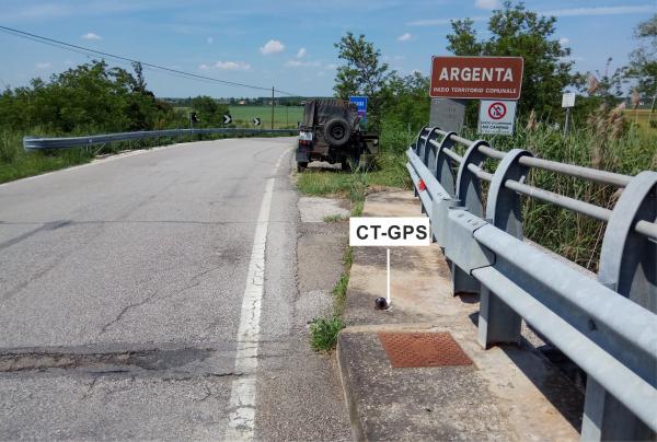 | Materializzazione | Centrino metallico infisso nella platea in cemento della spalletta di un ponte. |
