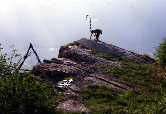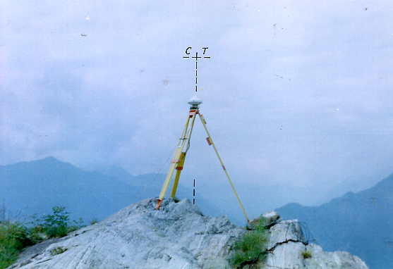 | Materializzazione | Segnale a Sud dello sperone roccioso costituito da un chiodo in acciaio inox cementato su roccia a circa 150 m. Sud-Est dell'Alpe Coriesco. Riferimenti: centrini metallici R1, R3; croce incisa R2. |