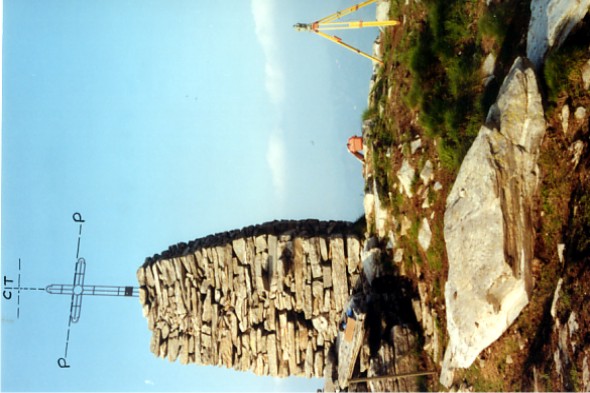| Materializzazione | Sulla sommità del monte omonimo. Croce in ferro su pilastro troncopiramidale in pietrame. Asse geometrico della croce. (GPS) |