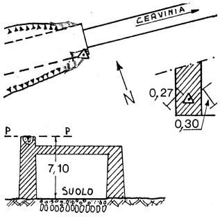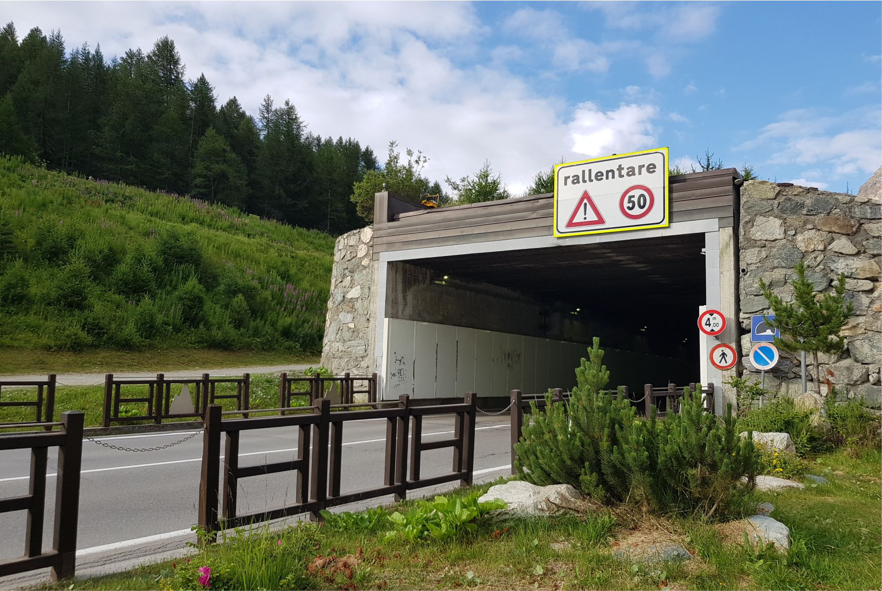 Sulla copertura della galleria artificiale posta a circa 500 m. a Sud del centro abitato di Cervinia sulla SS. 406. Centrino di superficie cementato sulla sommità del muretto in calcestruzzo sopra la galleria in prossimità dell'uscita lato Cervinia. (GPS)
