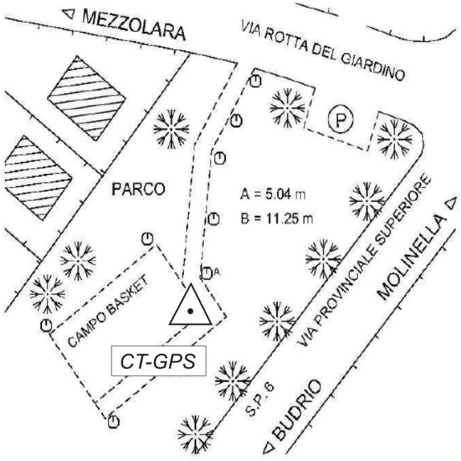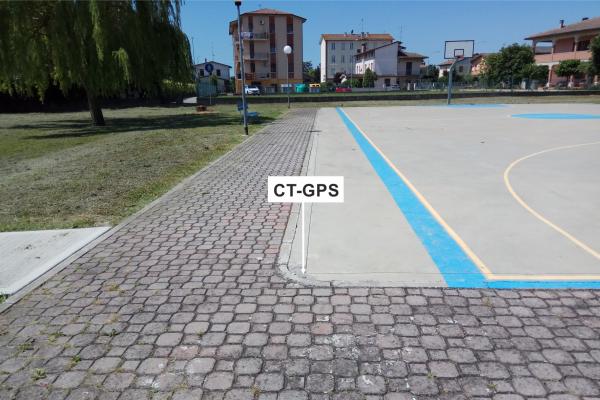 | Materializzazione | Centrino in acciaio inox del tipo Universale infisso presso lo spigolo nord – est del campo da basket in cemento nel parco comunale di San Martino in Argine in Via Rotta del Giardino. |
