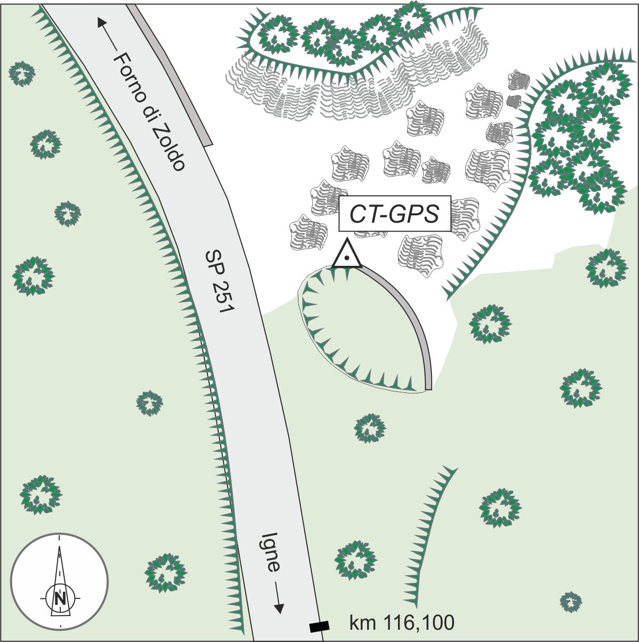 | materializzazione | Chiodo anonimo infisso su muretto di contenimento a monte della strada provinciale ed in prossimità di un ponticello. |