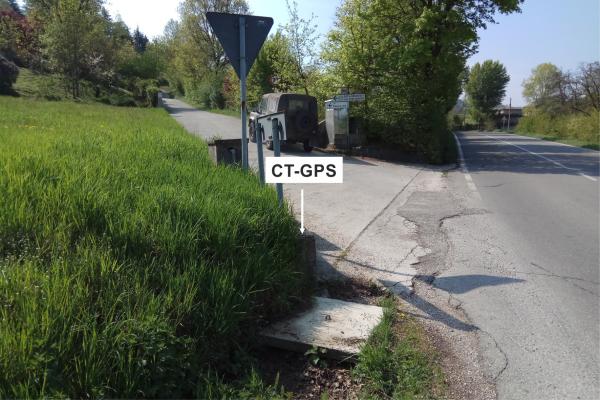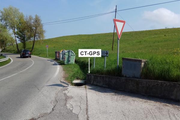 | materializzazione | Centrino metallico infisso nel muro in cemento sul bordo est della strada bianca per Cà Speltarino, all'incrocio con la S.P. 623 al km 41,250 della stessa. |