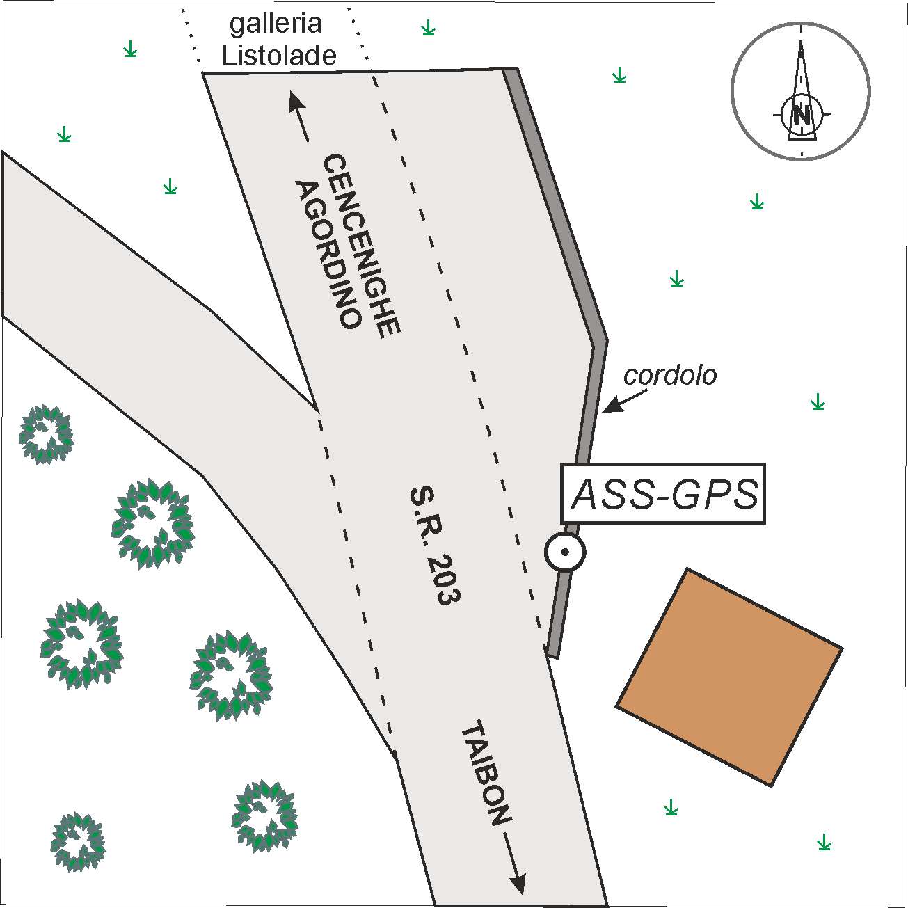 | materializzazione | Centrino in acciaio inox di tipo universale, infisso sul cordolo in cemento, lato destro della S.R.203 direzione Cencenighe Agordino, in prossimità della galleria Listolade. |