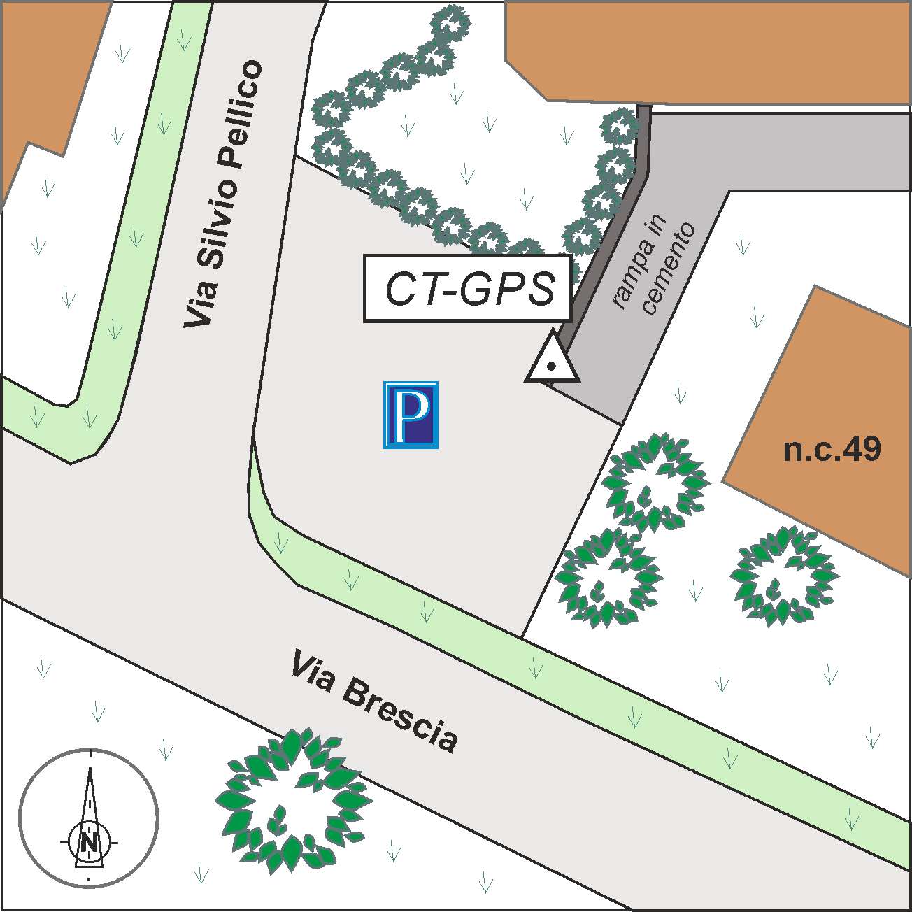 | materializzazione | Centrino in acciaio inox di tipo universale, infisso su muretto in cemento, lato sinistro della rampa di accesso ai parcheggi del condominio di via Silvio Pellico n.4. |