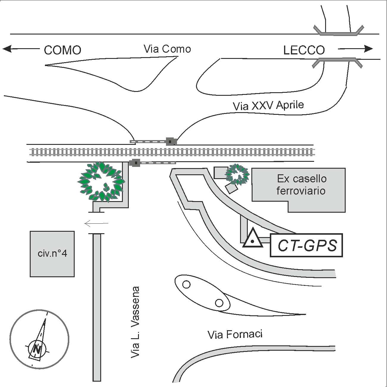 Centrino in acciaio inox di tipo universale, infisso sull'estremità ovest del muro di sostegno dell'aiuola che delimita l'ex casello ferroviario.