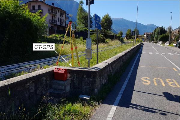 Centrino in acciaio inox di tipo universale, infisso sul gradino esterno della risega del muretto che costeggia la ferrovia.