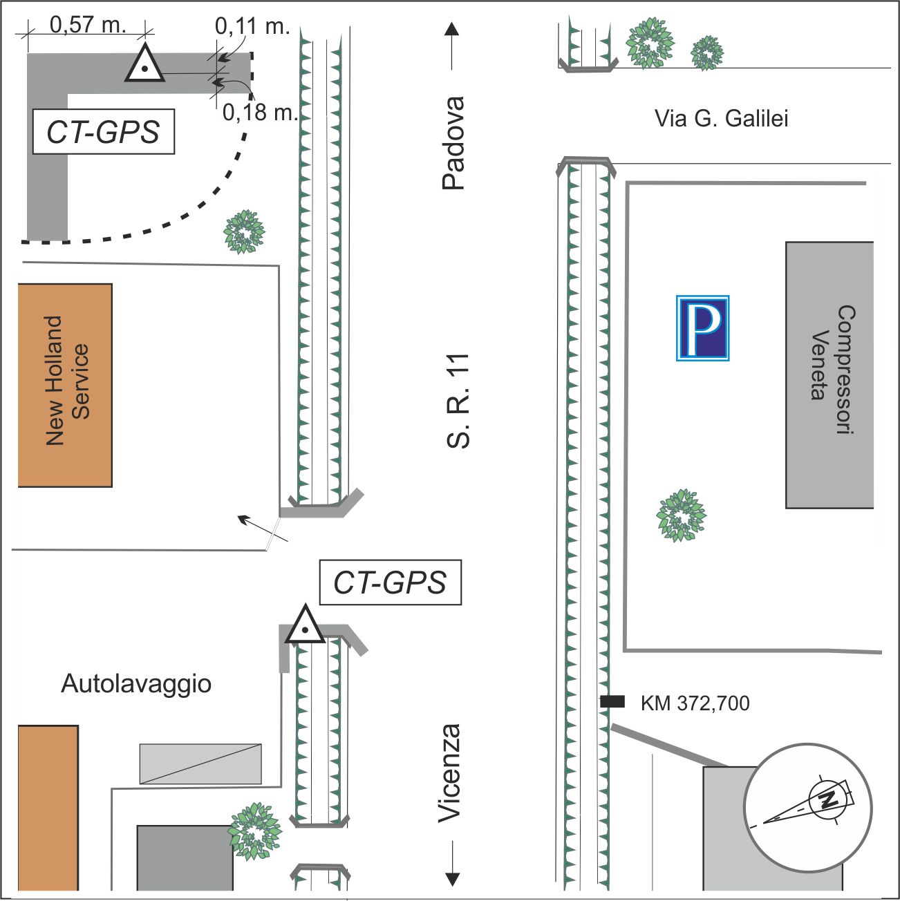 | materializzazione | Centrino in acciaio inox di tipo universale, infisso sulla sommità del muretto lato sinistro del ponticello d'accesso all'autolavaggio di fronte al km 372,700. |