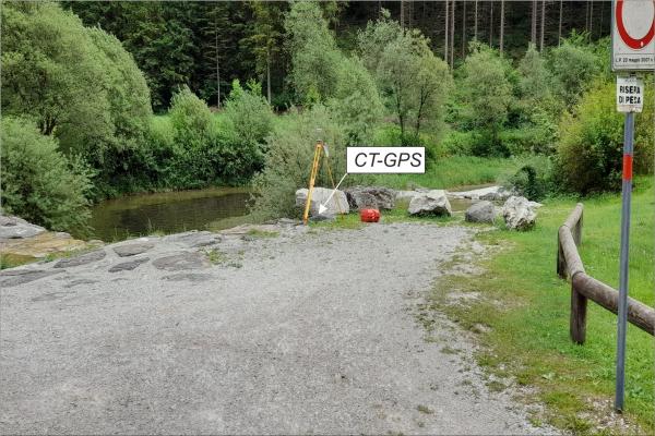 Centrino in acciaio inox di tipo universale, infisso su roccia cementata in alto e sul lato destro del guado sul torrente, che si trova nell'area picnic.