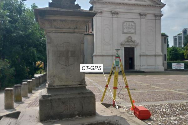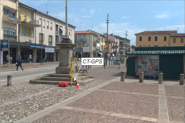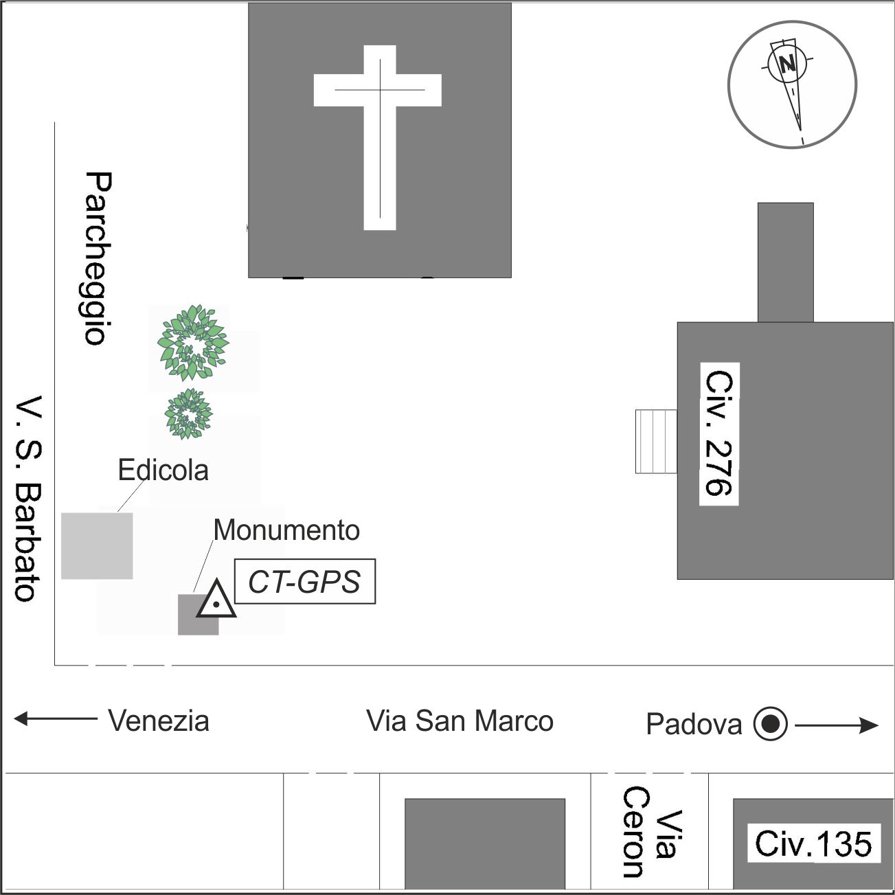 Centrino in acciaio inox di tipo universale, infisso sulla base in cemento del monumento dislocato nella piazza della Chiesa Parrocchiale.