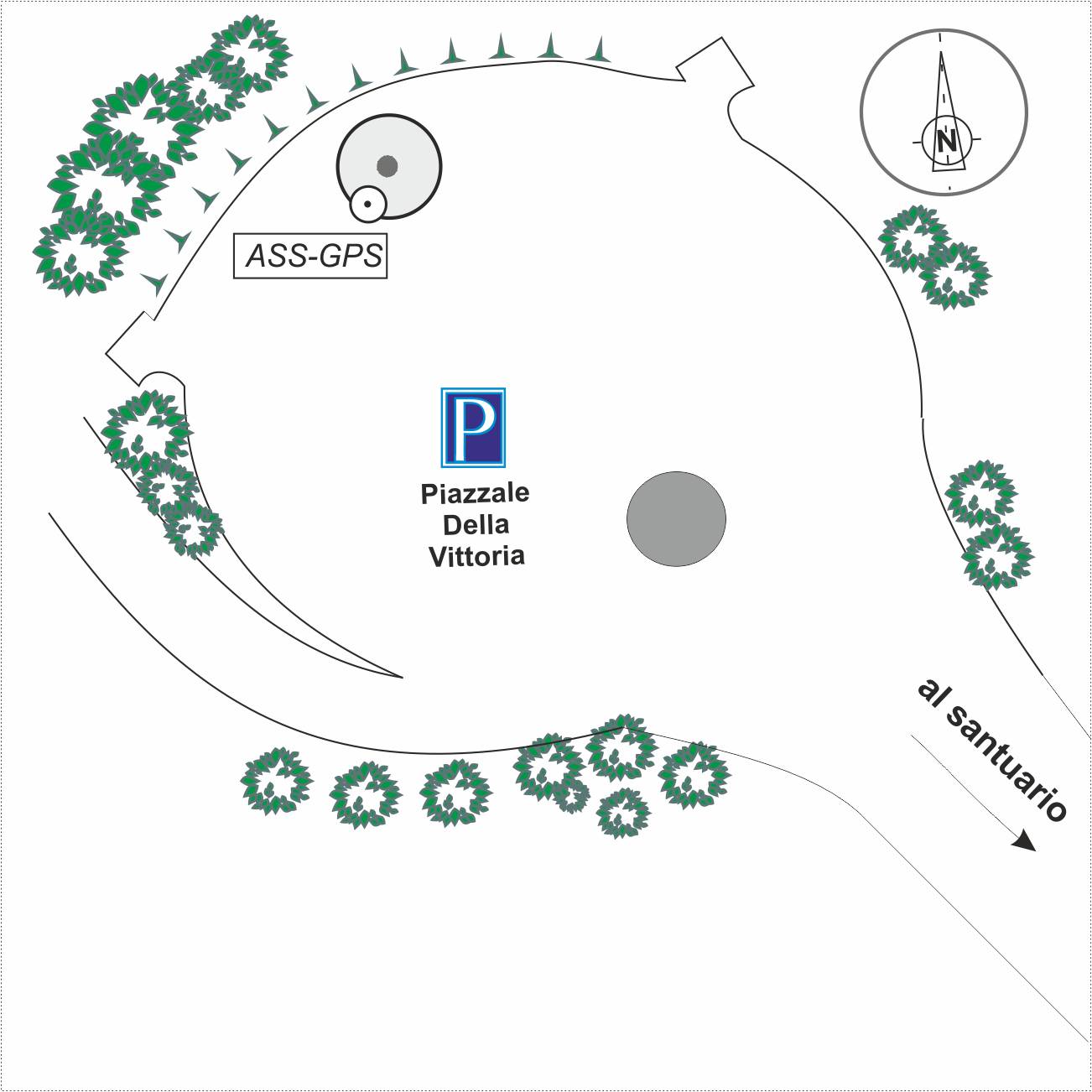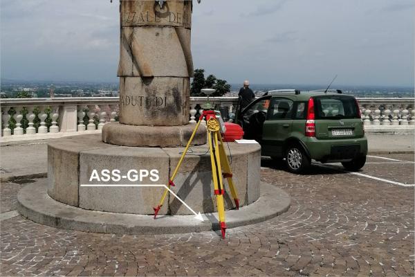 | materializzazione | Centrino in acciaio inox del tipo "GNSS D", infisso nel basamento, lato sud, del pennone porta bandiera, che si trova a nord-ovest nel parcheggio del Santuario di Monte Berico. |