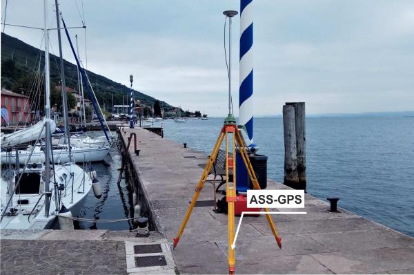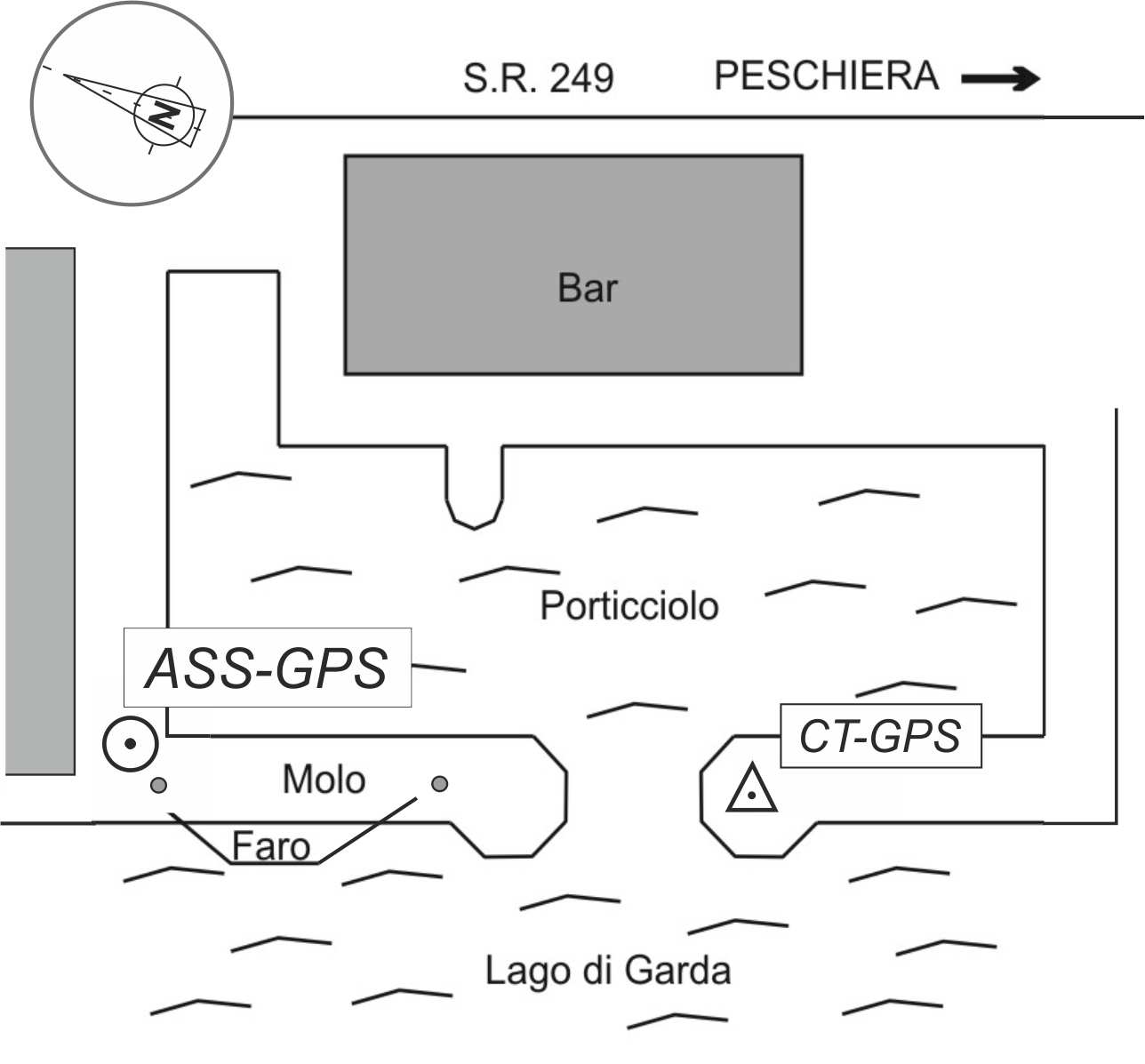 Centrino in acciaio inox del GPS tipo C (piatto) di altro Ente (Ministero delle Finanze Dipartimento Territorio e Catasto) infisso sul molo nord del porticciolo a fianco del faro di mezzo.