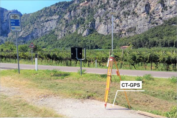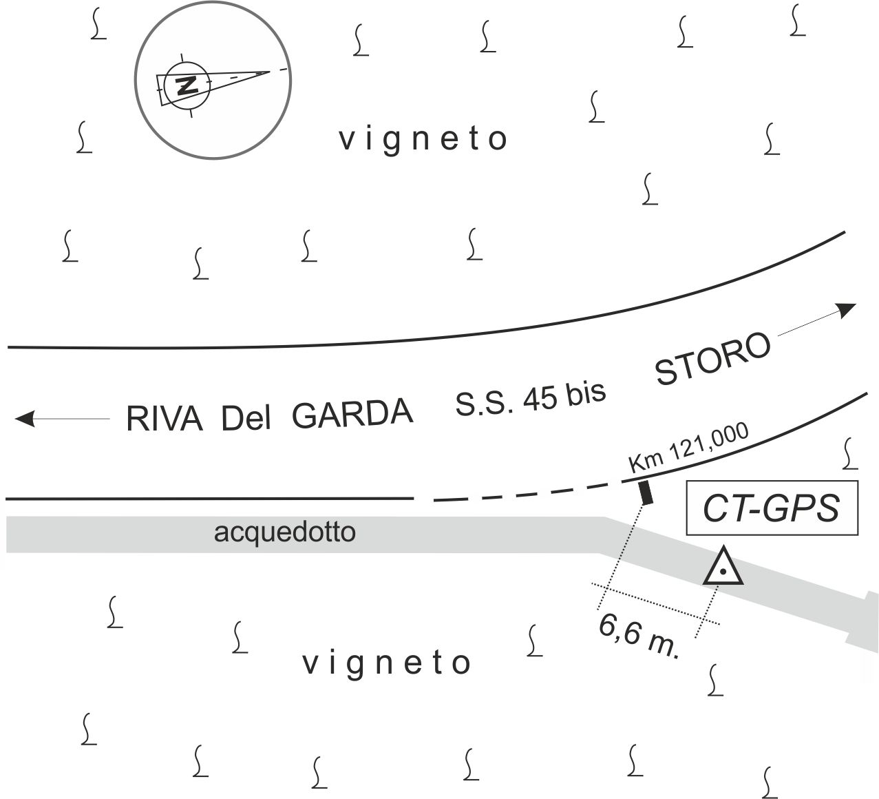| materializzazione | Centrino in acciaio inox del tipo "GPS C" infisso sulla sommità della soletta di copertura di un acquedotto interrato, posto a una distanza di circa 6,60 metri dal cartello chilometrico. |