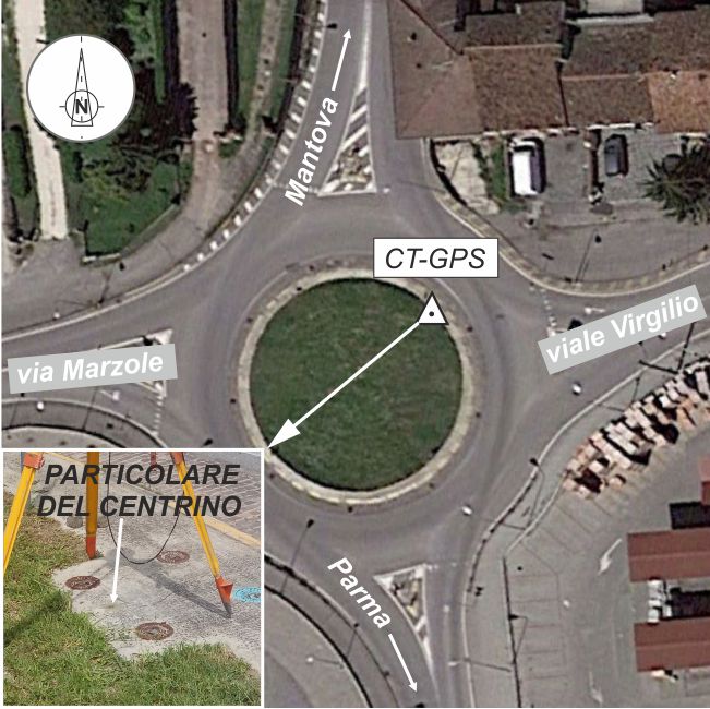 Centrino in acciaio inox di tipo universale infisso su un massetto dove sono presenti 4 pozzetti tondi in ghisa, il tutto ubicato al lato esterno della rotatoria, lato viale Virgilio.