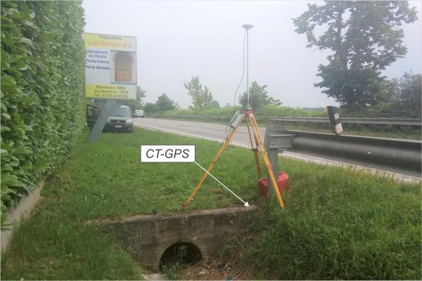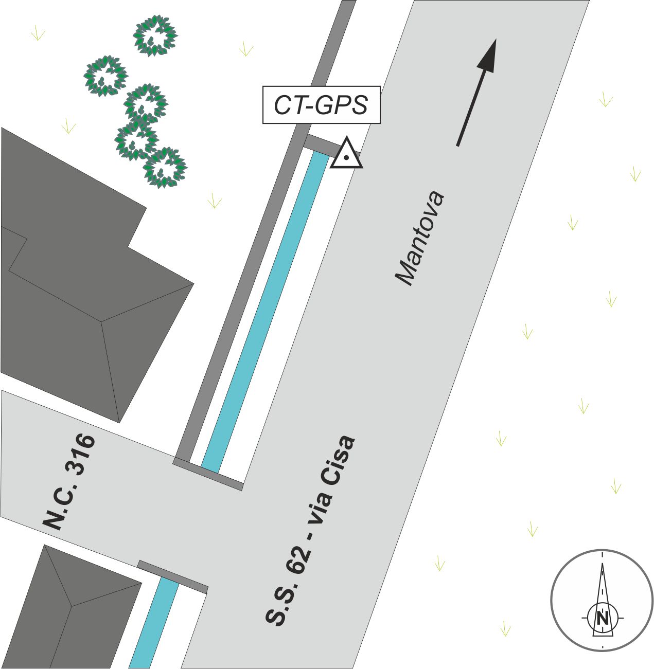 Centrino in acciaio inox del tipo universale, infisso sul muretto di un ponticello in cemento posto sul fosso al lato destro della strada, direzione Suzzara, nelle vicinanze del civico 316.