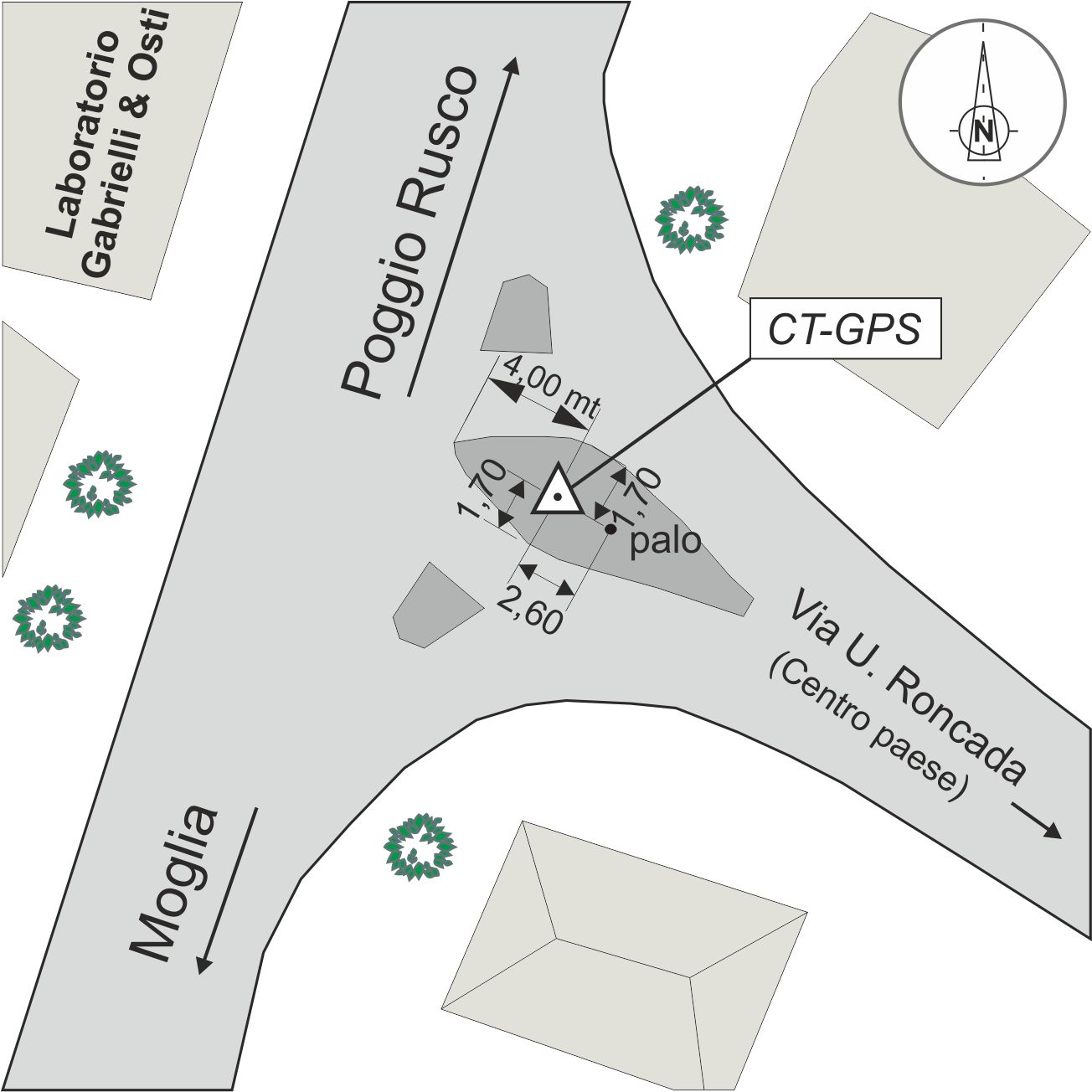 | materializzazione | Centrino in acciaio inox del tipo universale infisso al centro dell'aiuola spartitraffico in cemento armato. |
