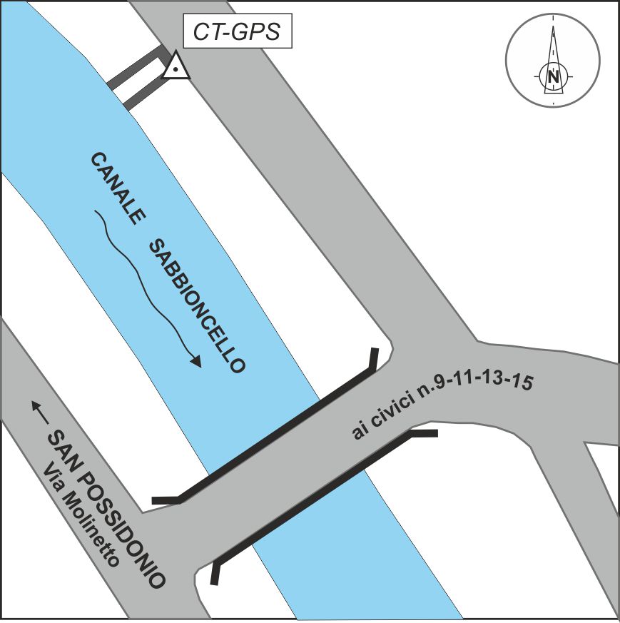 | materializzazione | Centrino in acciaio inox, del tipo universale, infisso sullo spigolo sinistro del massetto di una chiusa, a sinistra del ponte sul canale Sabbioncello. |